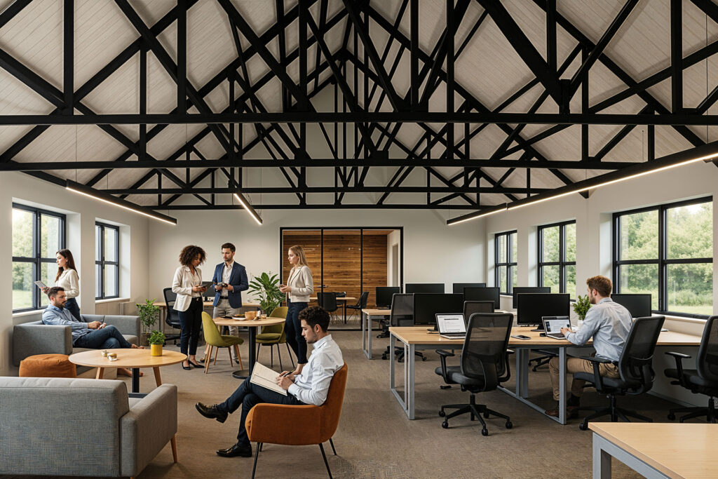Our projects span headquarters, creative studios, co-working spaces, and community-focused workplaces and large-scale industrial facilities such as warehouses and logistics centres. Each environment is designed with adaptability in mind, allowing layouts to evolve with changing work patterns, technology, and team structures.