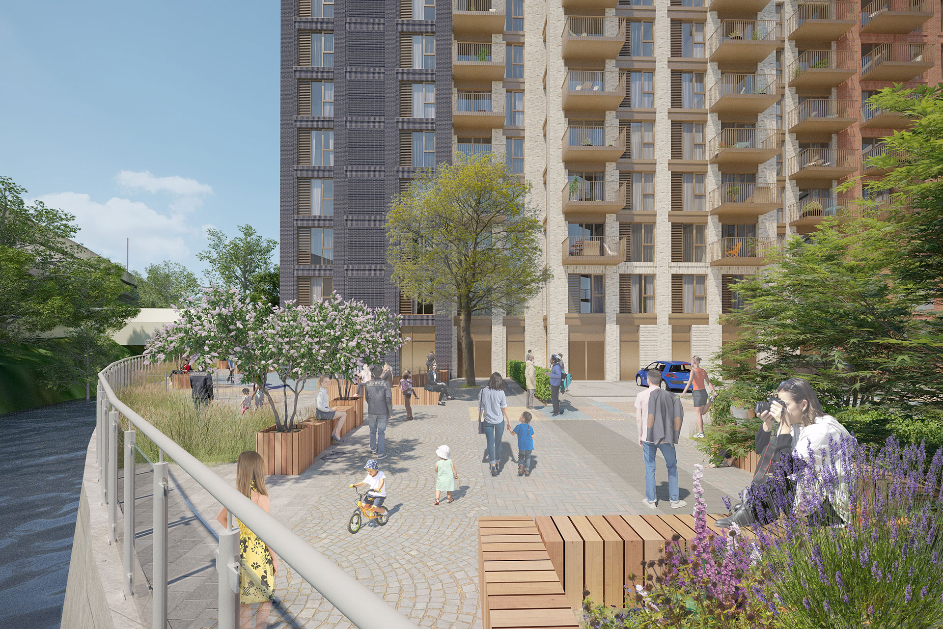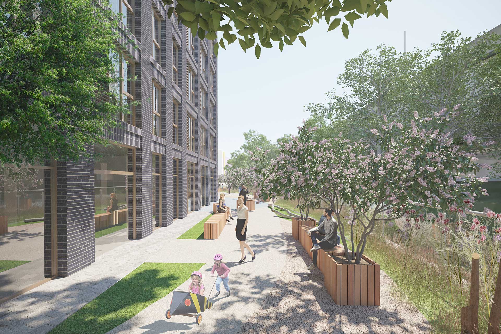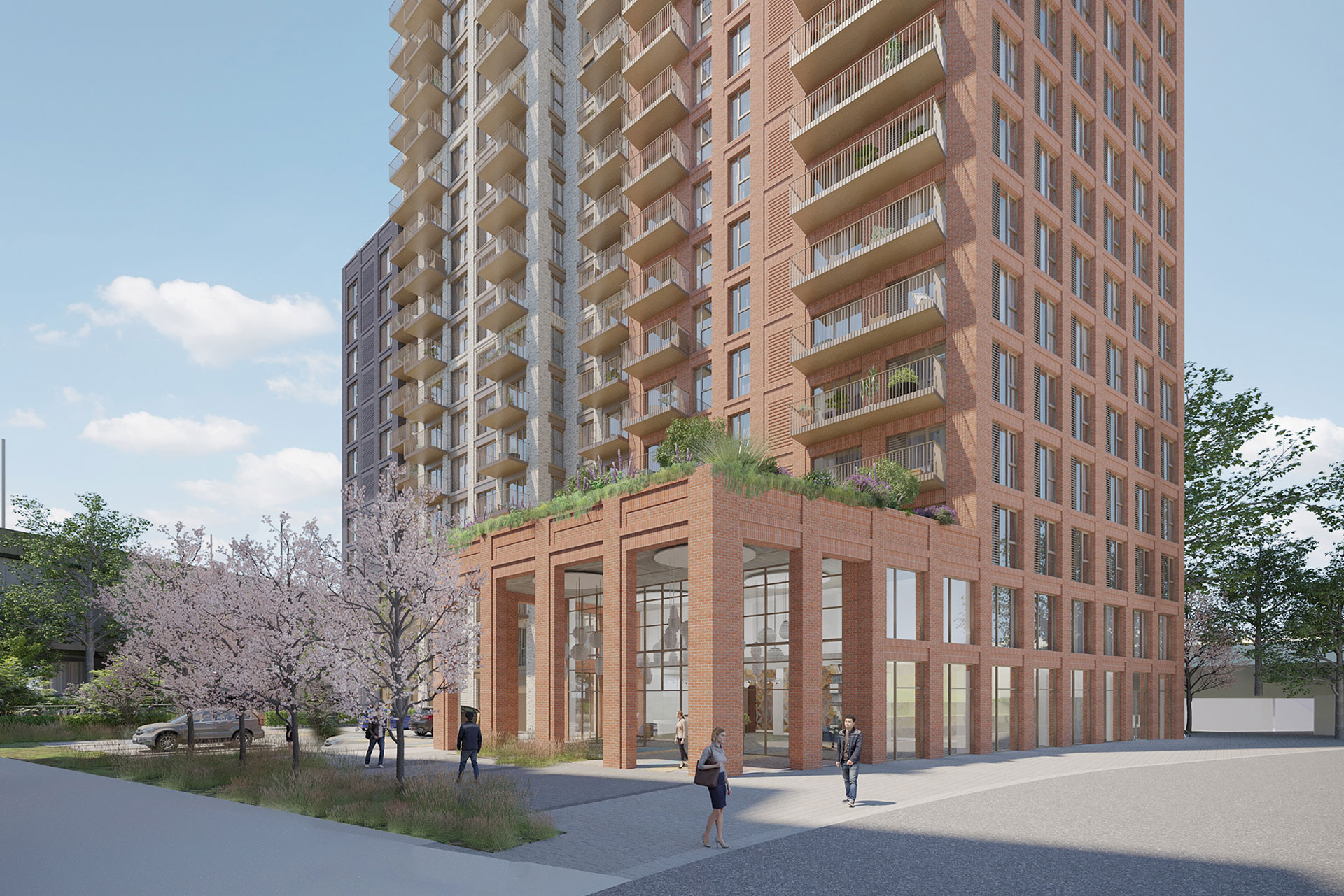 We have worked closely with Telford Homes, LB Redbridge and the GLA to create a project that will positively activate the site and bring it into the town centre as a BTR residential development. The development is outwardly looking, it is not a gated community, it is a key focal point of arrival into Ilford on the new Elizabeth line (Crossrail) and includes active frontages, visible amenity and landscape spaces from local and wider contexts, a mix of uses which complement the residential offering of 239 apartments of which 35% will be affordable homes for Ilford residents.