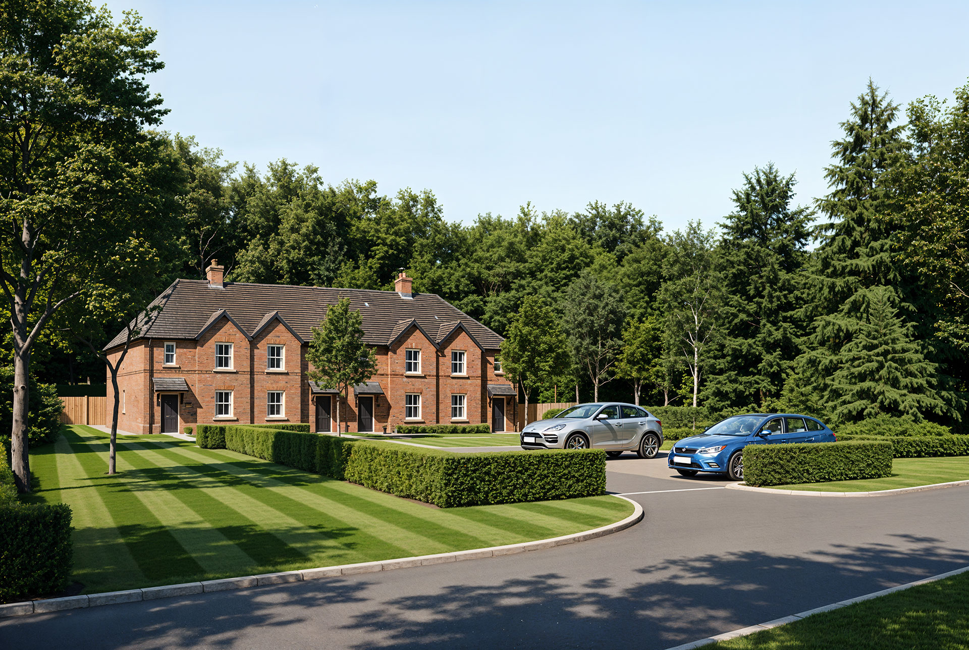 The existing site is made up of agricultural buildings, ad-hoc sheds, Silwood Lodge and Silwood Manor. The proposal looks to retain the low-level height throughout the site, with the new-build cottages set out as detached, semi-detached, terrace or apartment units. This helps create a modest domestic scale which is subservient to the grandeur of Silwood Manor.