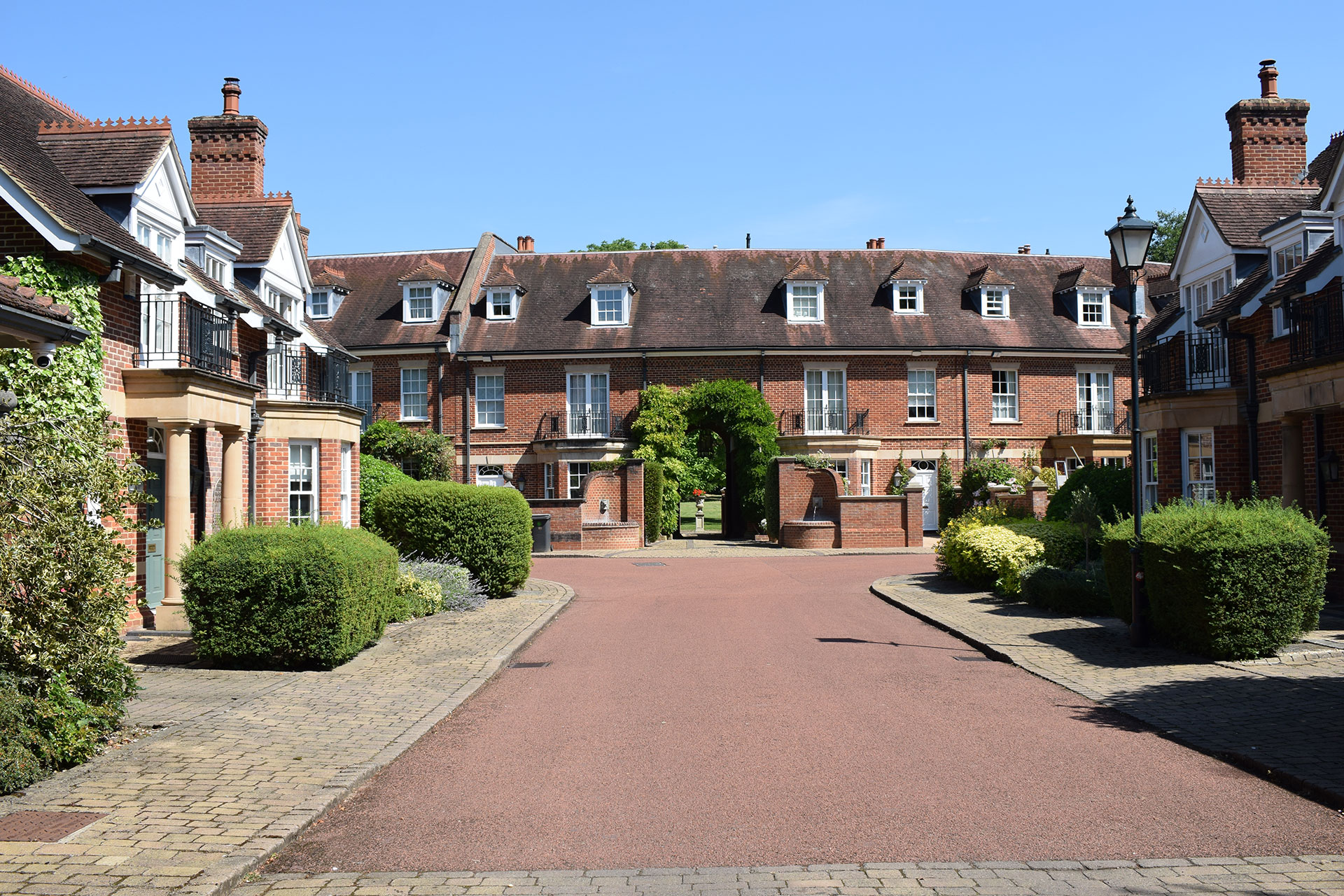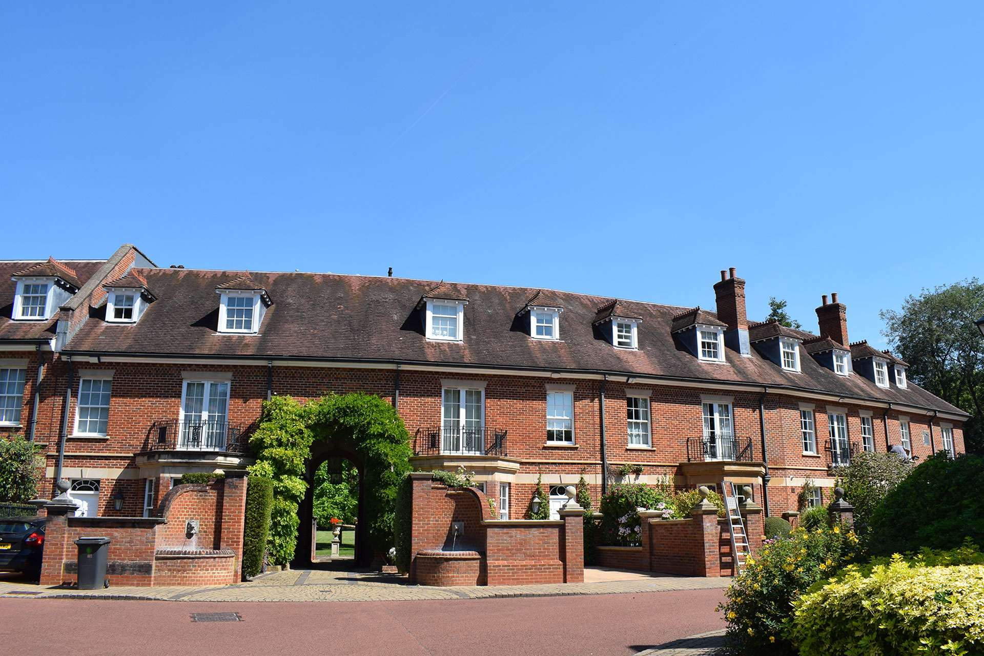 In order to preserve the majority of the open areas of the garden the units are grouped in two areas, the first as a Georgian style crescent and the second in Victorian style within a walled area to the East.